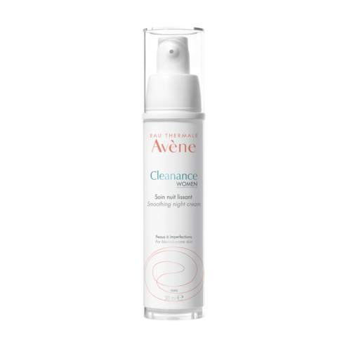 Denne fugtgivende natcreme er beregnet til uren hud hos voksne kvinder. Den reducerer urenheder og varige mærker, samtidig med at den gør huden mere jævn. Cleanance Women Night er en effektiv natcreme takket være indholdet af følgende ingredienser: Synovea™ HR, der mindsker urenheder og oxidering af sebum*, som giver synlige hudorme. Retinaldehyd, der hjælper til at reducere varige mærker og mindsker de første alderstegn. Avène Termalkildevand, der har beroligende og irritationsdæmpende egenskaber. Dens ikke-fedtende, bløde og behagelige konsistens giver huden komfort hele natten lang. Dens lette duft gør den til en musthave natcreme, som kan anvendes alene eller efter påføring af serum. Cleanance Women Night skal påføres på ren hud.
