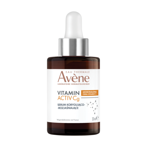 Cellulær aldring fører til en gradvis forringelse af vævets funktion. På hudniveau er konsekvensen fremkomsten af kliniske karakteristika som tørhed, hyperpigmentering, slaphed og rynker. Avène Dermatological Laboratories har skabt Radiance Corrector Serum, der er koncentreret i tre dermatologiske aktive ingredienser: [VITAMIN Cg*]: kendt for sin antioxidanteffekt, i serien svarende til 20% C-vitamin**. [NIACINAMID] 3%: regenererer huden på lang sigt og reducerer forekomsten af pletter. [BAKUCHIOL] 1,5%: anerkendt som et plantebaseret alternativ til retinol, korrigerer rynker. Med sin komplementære kombination af aktive ingredienser giver dette serum øjeblikkelig glød. Med det samme: huden stråler***. Efter 15 dage: Huden er udglattet*** og føles strammet op 95% ****. Efter 1 måned: mørke pletter er reduceret *****. Vitamin Activ Cg Radiance Corrector Serum er testet på sensitiv hud. Det kommer i en glaspipetteflaske, indeholder 94% ingredienser af naturlig oprindelse og er uden ingredienser af animalsk oprindelse.